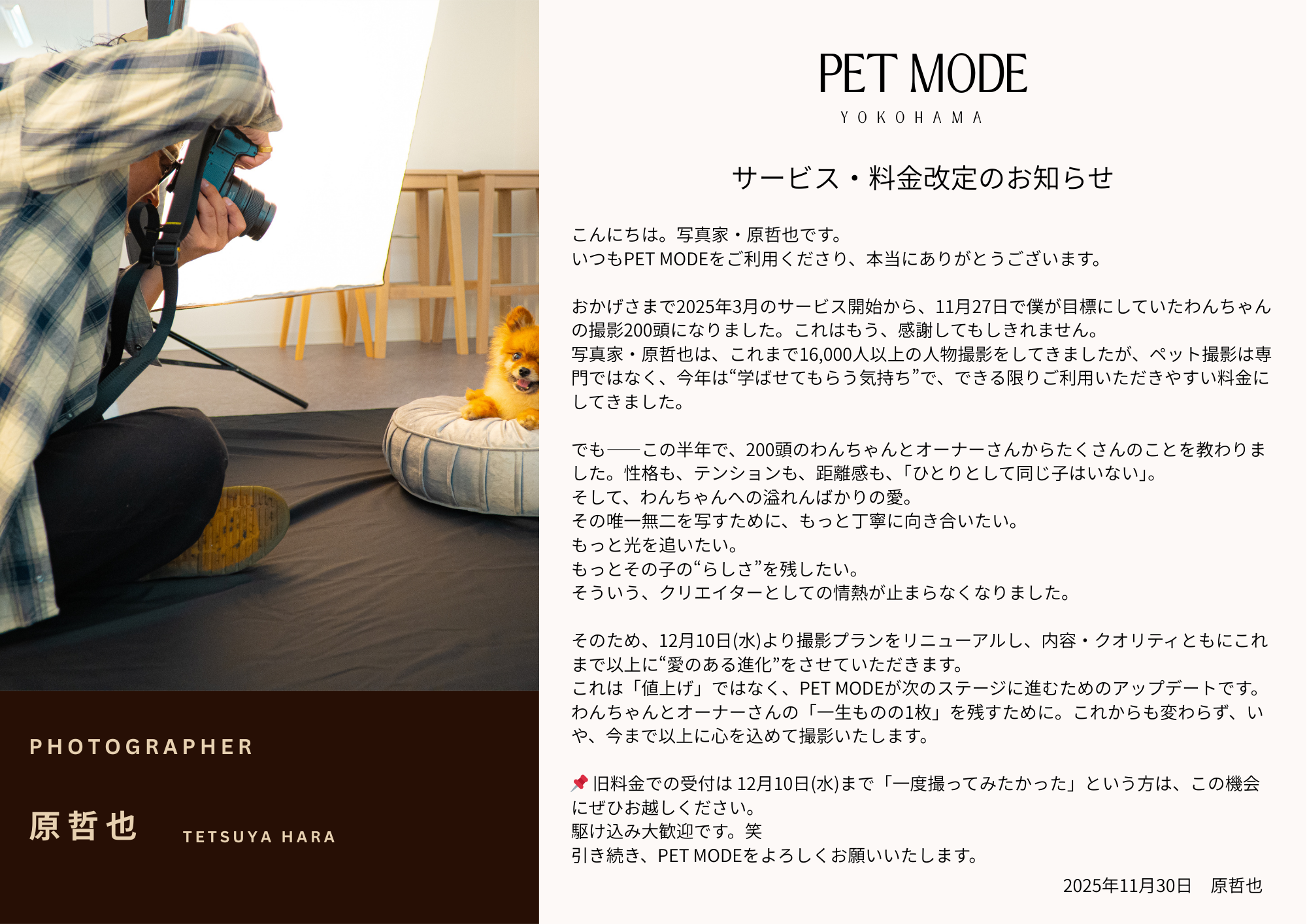30分 ワンちゃんがスタジオに慣れるまで・背景や使用小物の選定時間も含みます。